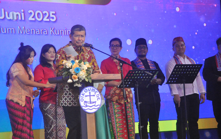 “Puji syukur ke hadirat Tuhan Yesus Kristus Kepala Gereja yang hidup karena atas kasih dan penyertaannya kita dapat merayakan hari ulang tahun PGIW yang ke-60,” kata Tony Wenas saat menyampaikan Welcoming Speech secara daring diacara puncak perayaan HUT ibadah syukur di Menara Kuningan Jakarta Sabtu (21/06/2025) yang dihadiri Sekretaris Daerah (Sekda) DKI Marullah Matali.